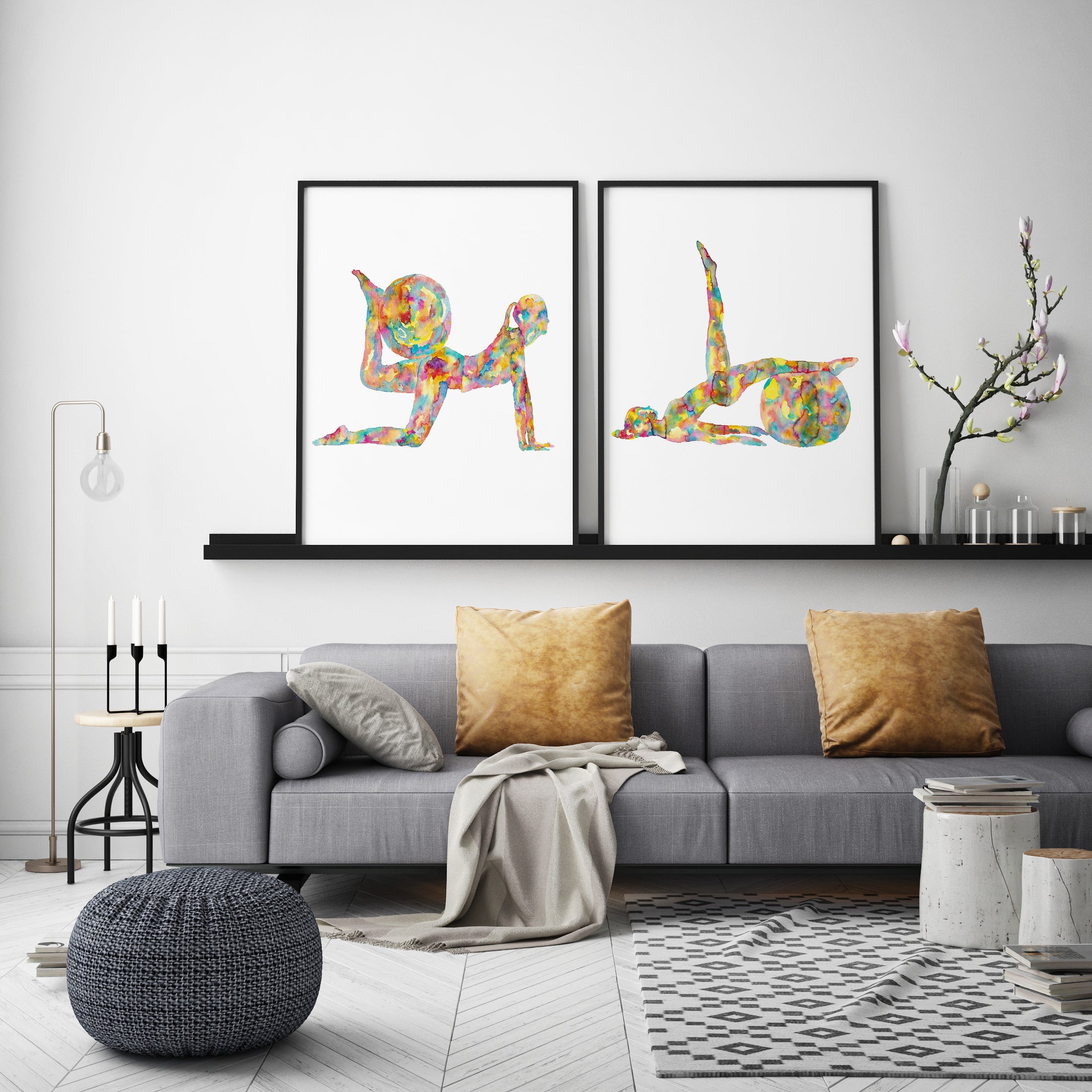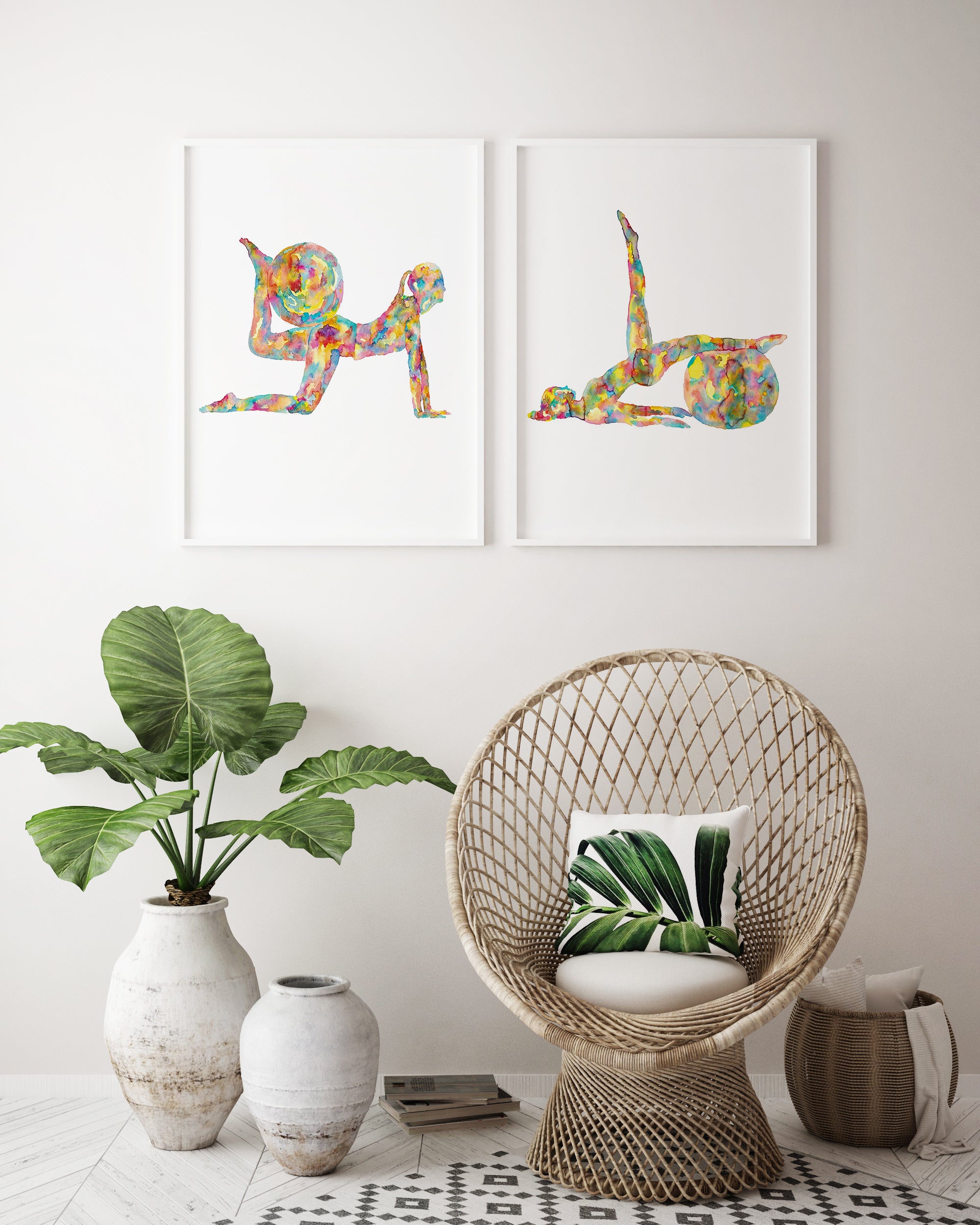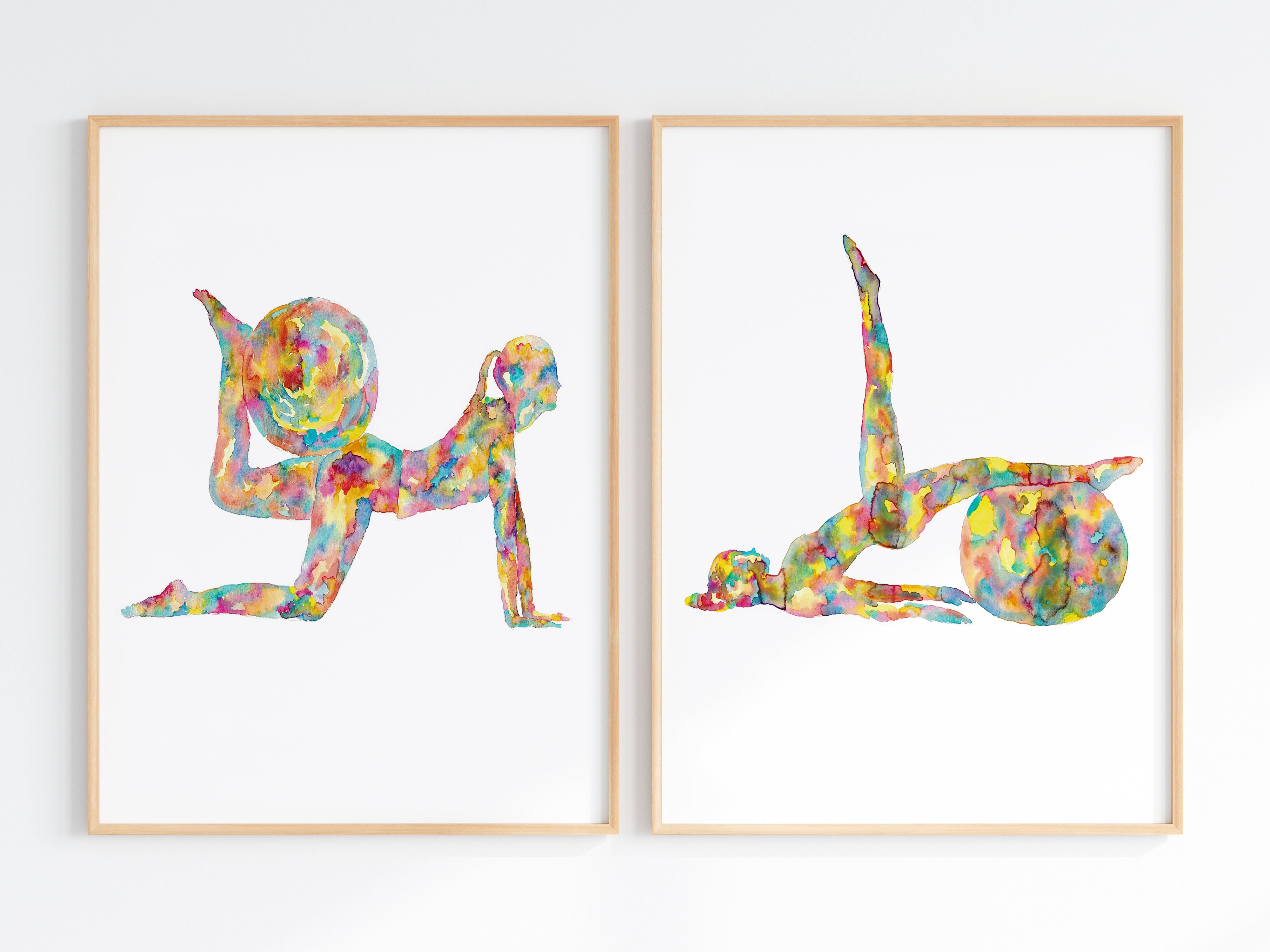 Set of 2 pilates art print watercolor painting