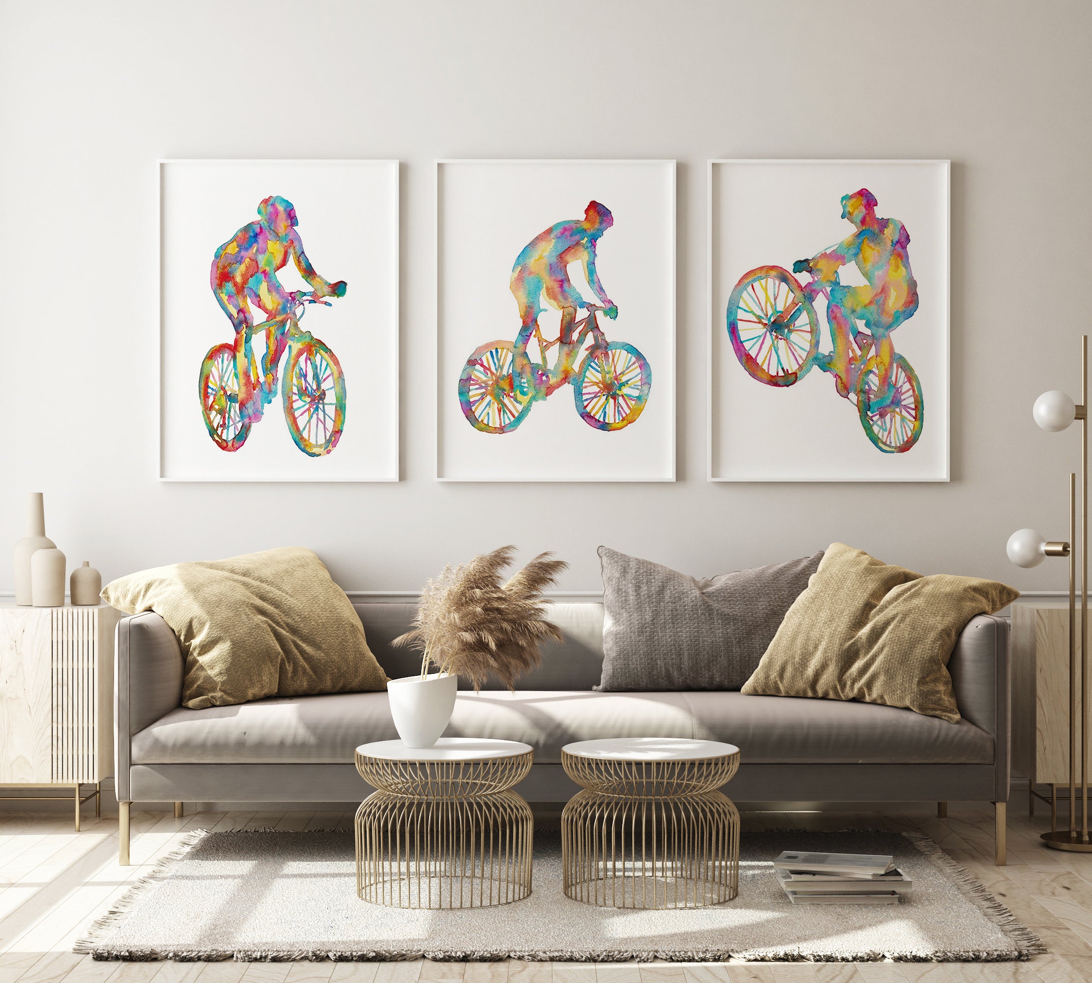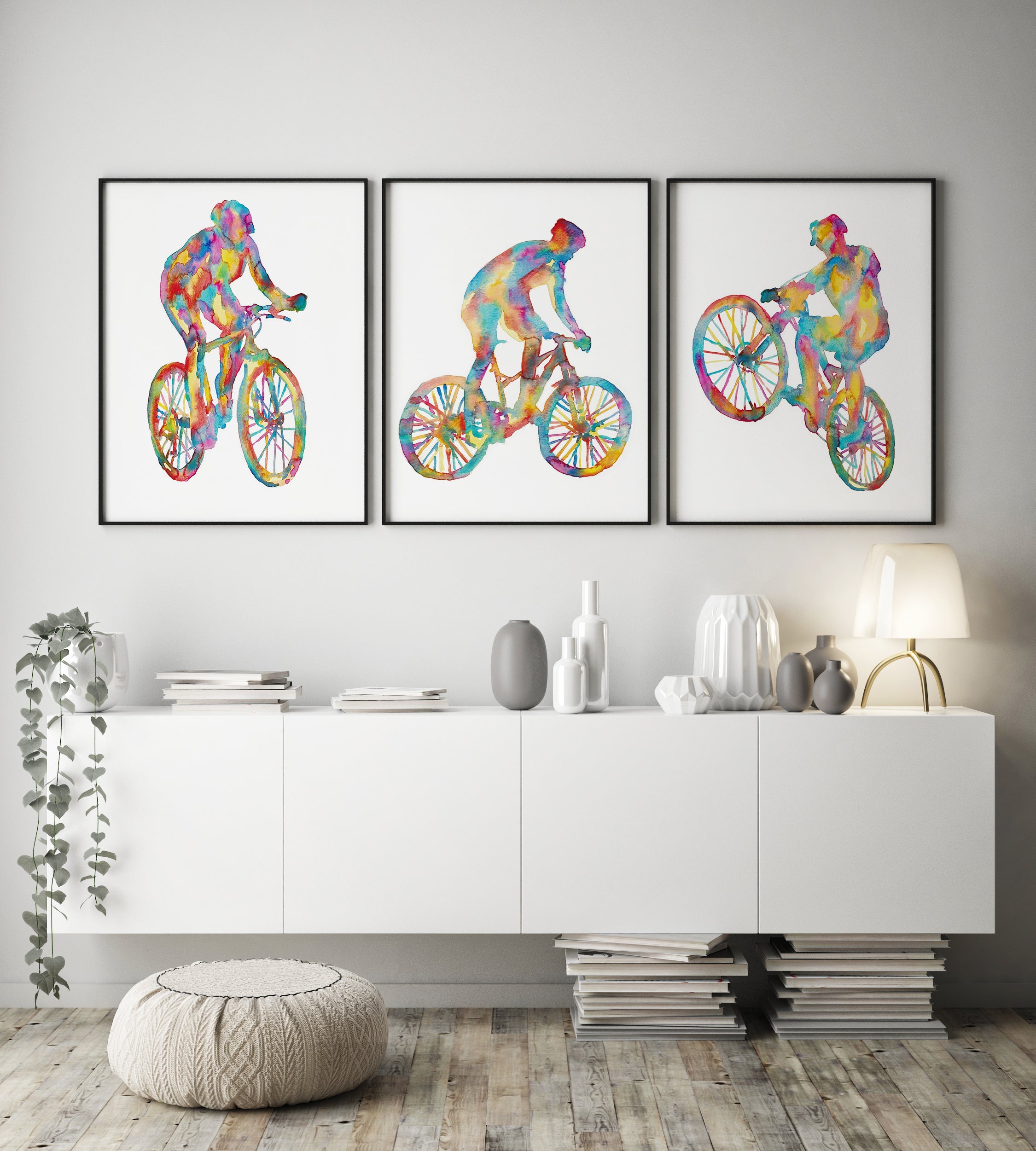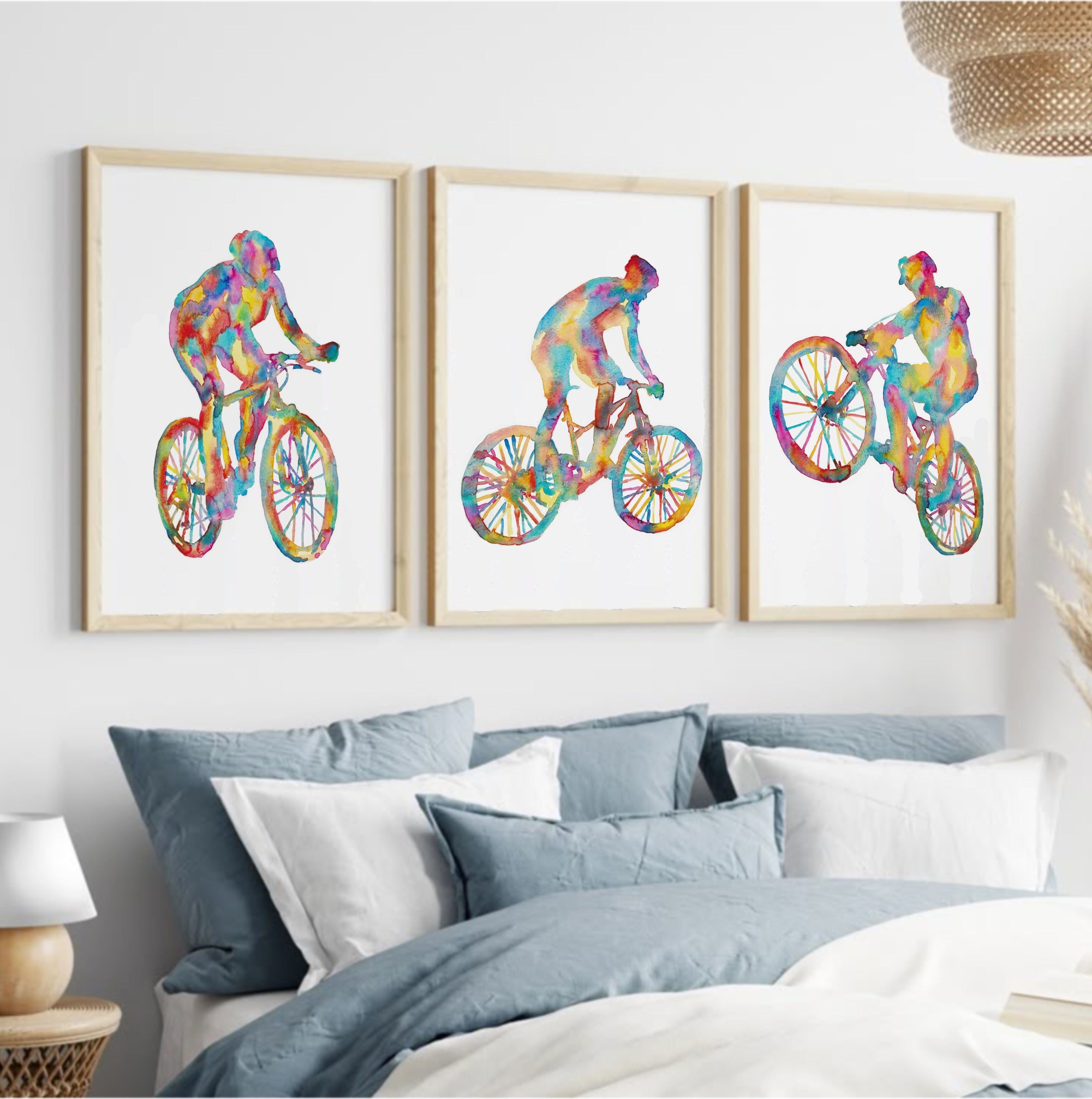 Set of 3 mountain biking art print watercolor painting